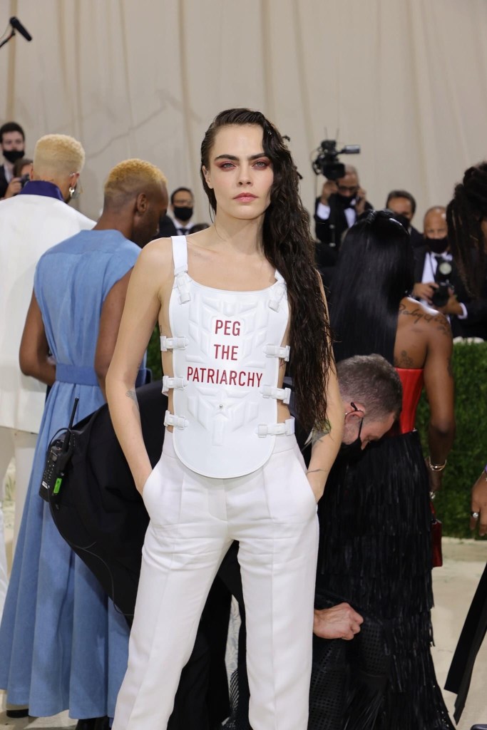 Just like Cara Delevingne’s outfit at the 2021 Met Gala, where she arrived wearing a vest with the words ‘Peg the patriarchy’ written across the front. The message “Peg the patriarchy” in a bold red lettering was about women’s empowerment” and gender equality.